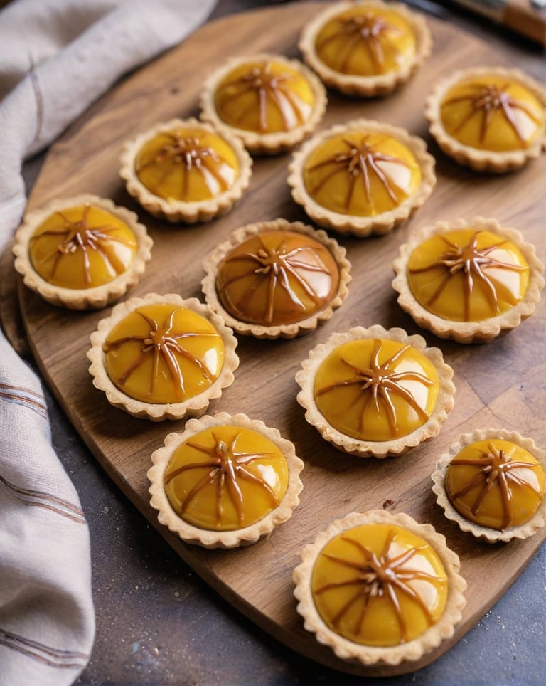Bake tart shells at 350°F according to package instructions and allow them to cool. In a saucepan, melt butter and brown sugar over medium heat. Stir in heavy cream and bring to a simmer until thickened. Remove from heat and stir in vanilla extract and sea salt. Crumble marzipan into the tart shells, then pour the caramel mixture over the marzipan. Bake for 10-12 minutes until the caramel is set. Cool completely, then garnish with sliced almonds and a sprinkle of extra sea salt.