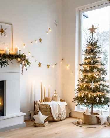 The Scandinavian aesthetic is all about creating a calm, cozy atmosphere with functional and beautiful design. Go for minimalist ornaments, such as wooden stars, geometric shapes, and delicate metallic accents. Layer in natural textures like faux fur, woven baskets, knitted garlands, and small, rustic wooden details to add warmth and interest. The minimalist Scandinavian tree is perfect for those who love a clean, stylish look with a touch of hygge, creating a peaceful and clean Christmas atmosphere.