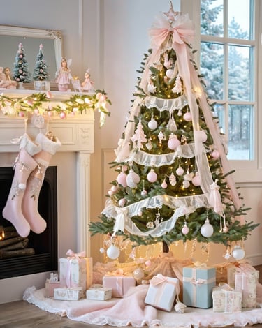 You're ready to decorate for Christmas, but you want to keep your girly pink decor, why not incorporate it into your Christmas decor this year. This theme blends vintage charm with a feminine flair, creating a dreamy, whimsical tree full of soft pinks, minty blue/green, delicate lace and ruffles, and vintage-inspired details. Think pastel pink ornaments, lace ribbons, antique-style baubles, and touches of gold or silver for a hint of sparkle. Add soft white lights enhance the tree’s sweet, airy feel, almost reminiscent of the nutcracker.