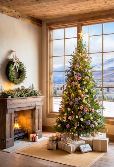 Maybe you're a bit tired of the snow and you miss the vibrant colors of spring and summer, well why not add your favorite florals to your tree! This whimsical theme is a delicate mix of colorful wildflowers, dried blooms, and lush greenery that brings a fresh, spring-like feel to your tree. Think soft pink peonies, delicate lavender sprigs, warm sunflowers, and pops of rich berry tones, combined with rustic elements like twigs and pinecones. The wildflower tree embraces color, texture, and a carefree spirit, creating a joyful, vibrant centerpiece for your holiday home.