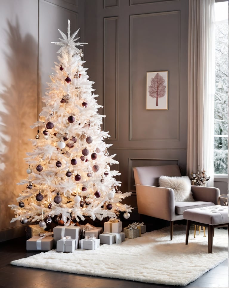To achieve this dreamy look, focus on layering textures that mimic the natural beauty of winter: fluffy white garlands, iridescent ornaments, and crystal-like decorations. Add twinkling white lights to enhance the frosty glow and incorporate accents of silver or pale blue to give the tree a refreshing, cool elegance. Whether you go for a subtle, minimalist approach or a more glittering, dramatic effect, this tree is the perfect way to make your home feel like a sparkling magical winter wonderland.