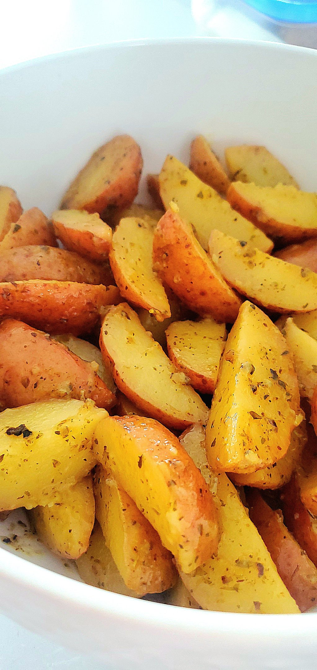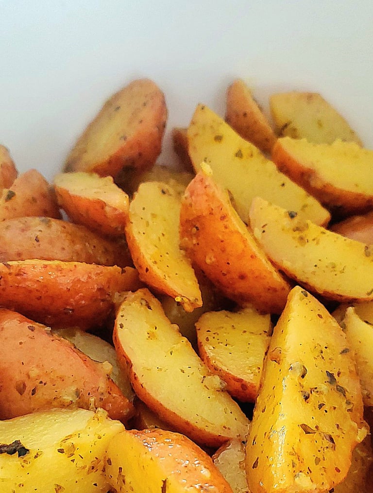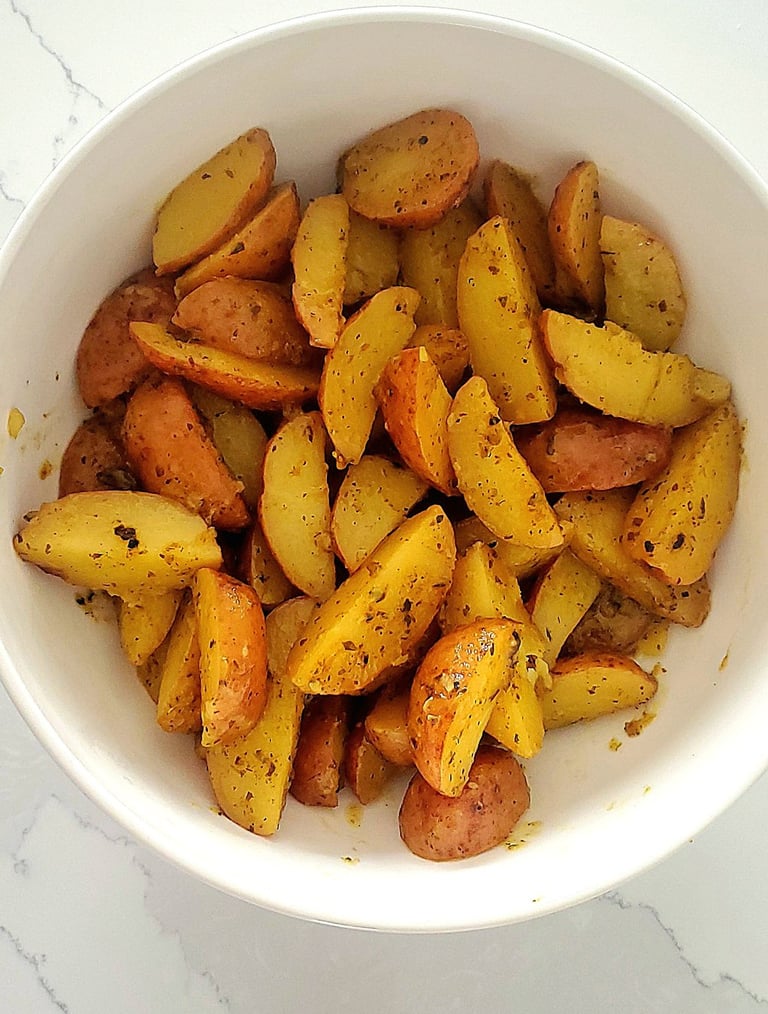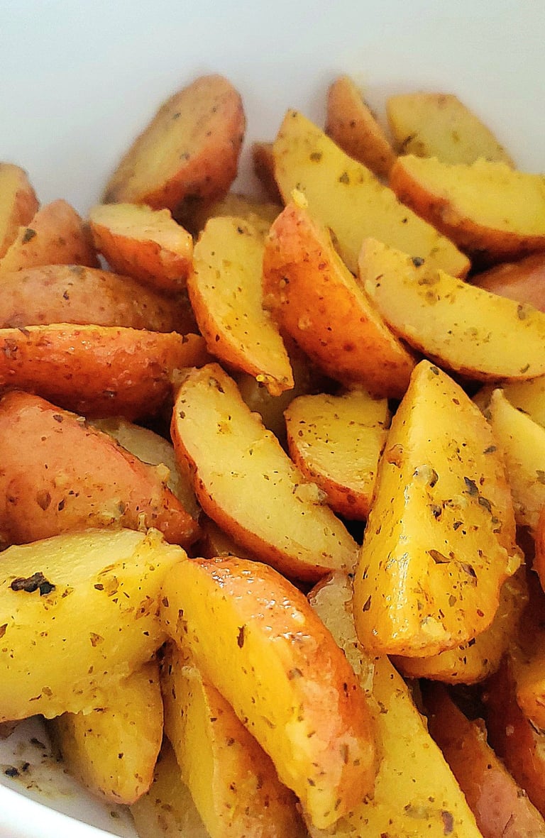 Serve the potato wedges immediately, and enjoy the lemon and garlic-infused mini red potatoes,