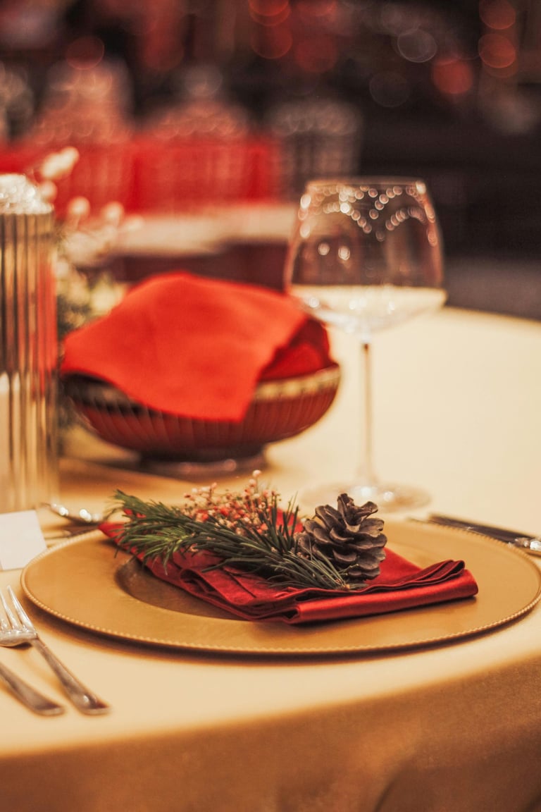 When selecting plates for a Christmas tablescape, consider festive designs or rich colors that complement your overall theme. Traditional holiday plates often feature Christmas scenes or patterns, while modern plates might lean toward sleek, minimalist styles in solid colors like white, gold, or deep green. Don’t be afraid to mix different styles—pairing a classic dinner plate with a more contemporary salad plate can add depth and variety. The key is to choose pieces that work well together while adding to the overall holiday charm of your table. When selecting cutlery you can just choose the regular ones you use so often as these will often get the job done or you can go forks, knifes, and spoon with an ornate design or color. When choosing napkins you can always go with a classic white or choose ones with beautiful or cute Christmassy designs. I also suggest overall to keep it simple, you don't always need to layer multiple dishes and your guests will be more comfortable with something more familiar!