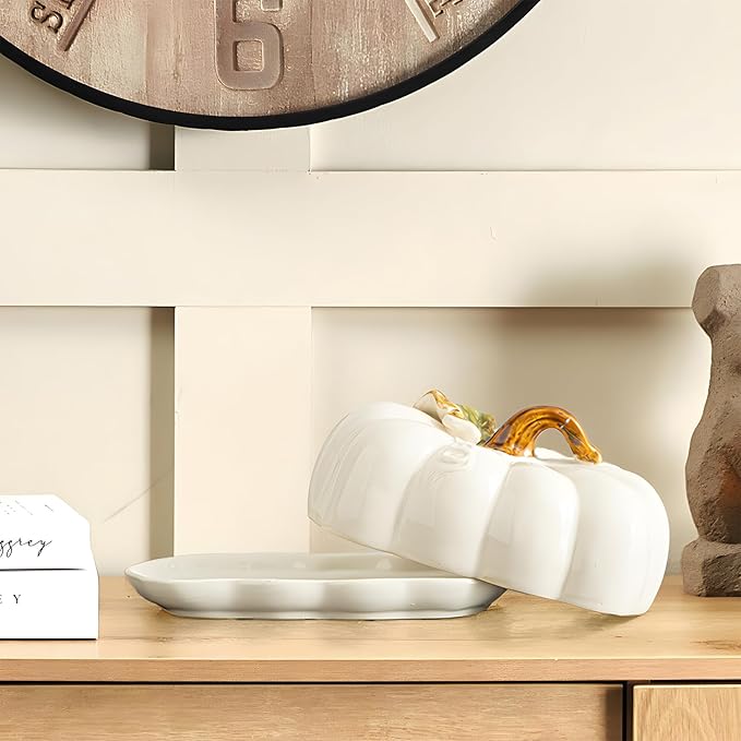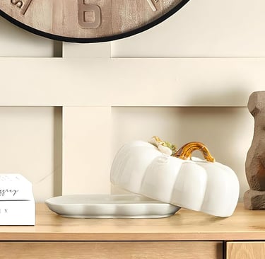 This whimsical ceramic pumpkin butter dish adds a festive touch to your kitchen table while keeping your butter perfectly spreadable. Every meal or freshly toasted bread will feel special with this charming butter dish!