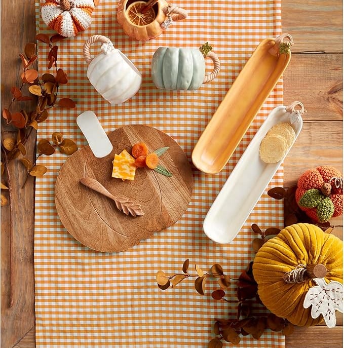 The cutest and most festive way to serve up crackers, cookies, candy corn, roasted seeds, or other treats is on this pumpkin cracker dish. A simple detail that seamlessly completes your fall harvest kitchen.